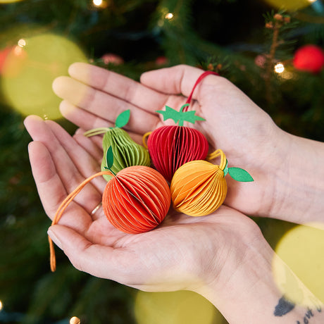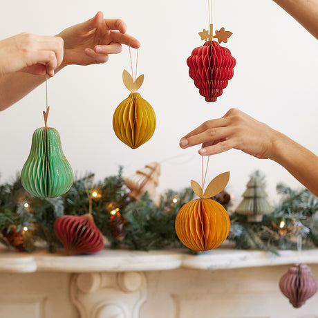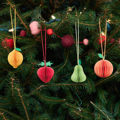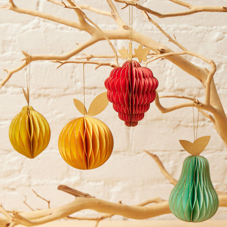 Fruit Honeycomb Paper Ornaments - Set of 4