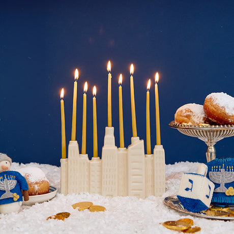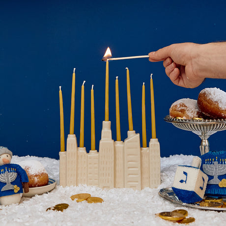 Gray Matte Ceramic Candle Holder with Beeswax Taper