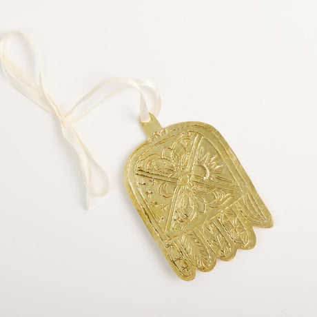Sun & Moon Etched Brass Hamsa Ornament