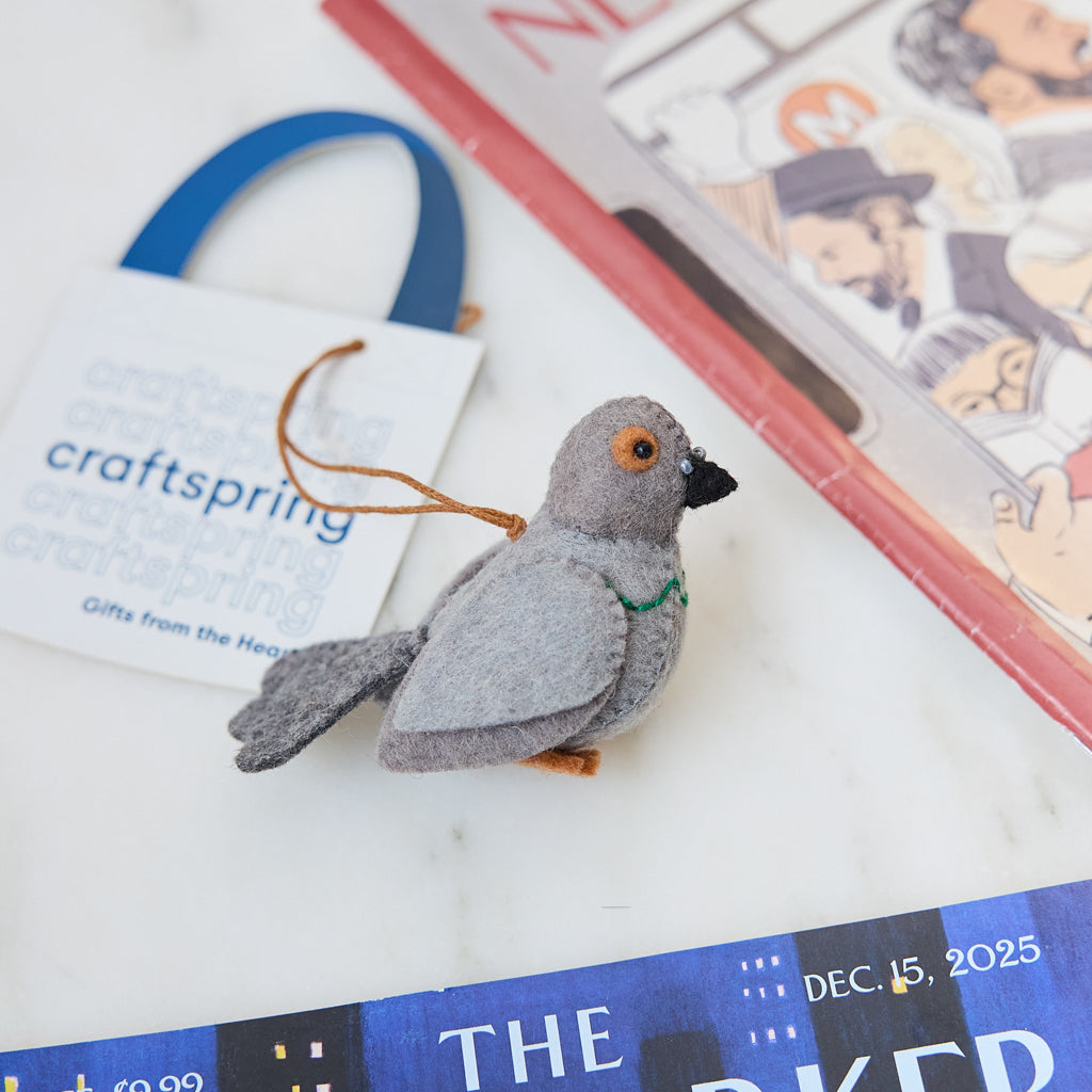 A true city icon, reimagined in felt. Our Pigeon Bag Charm celebrates the charm and character of urban life with a lovingly handmade wool pigeon, complete with delicate stitching and soft, sculptural detail. Each charm is ethically crafted by women artisans in Kyrgyzstan using locally sourced wool, making every piece one of a kind. Loop it onto your bag, keys, or backpack for a playful nod to city streets — or gift it to a fellow bird lover with an eye for thoughtful design. Equal parts whimsical and heirloom-worthy, this pigeon is always along for the ride.