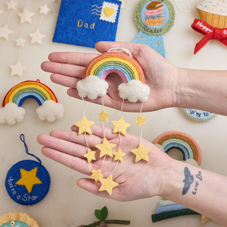 Blue Rainbow Up & Away Hot Air Balloon Ornament