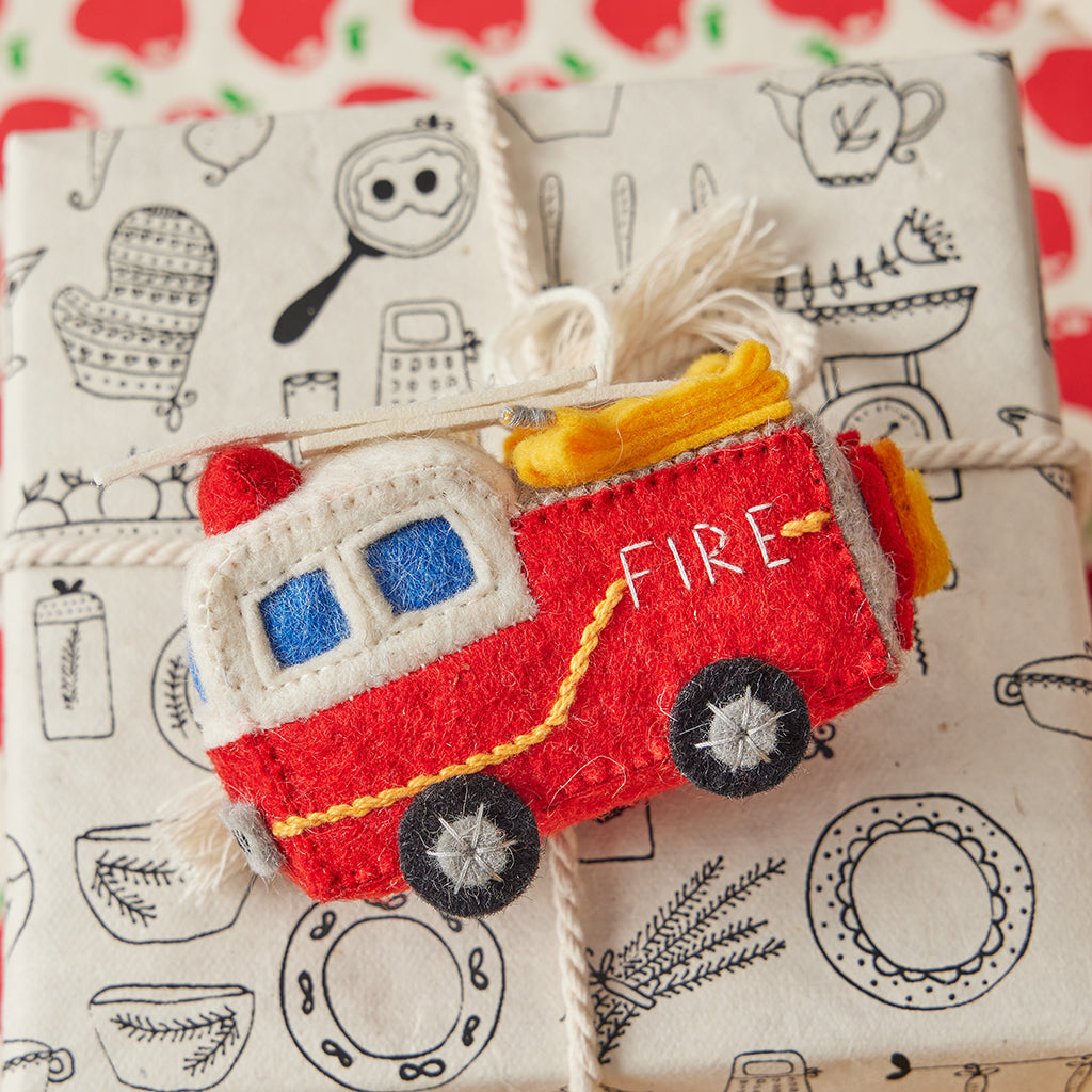 Always in service and ready day or night, our hand-felted Fire Truck ornament is Dalmatian-ready to come to the rescue. Our hat's off to the people who serve our communities. Thanks for your service!