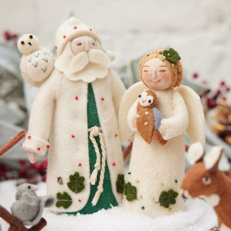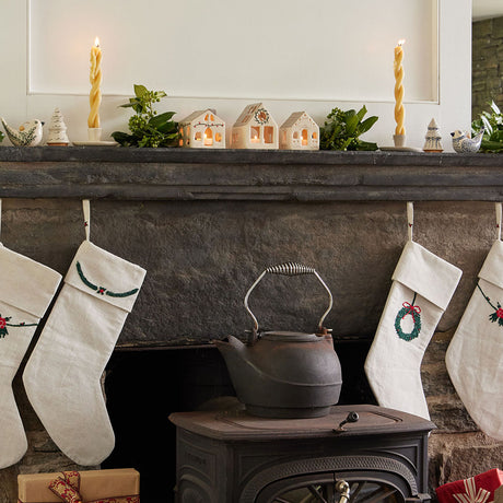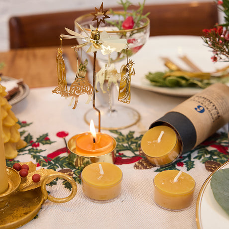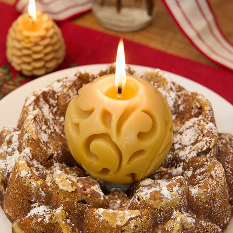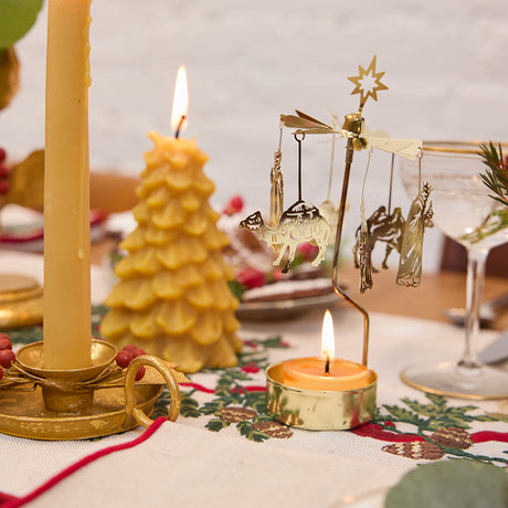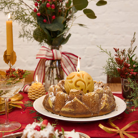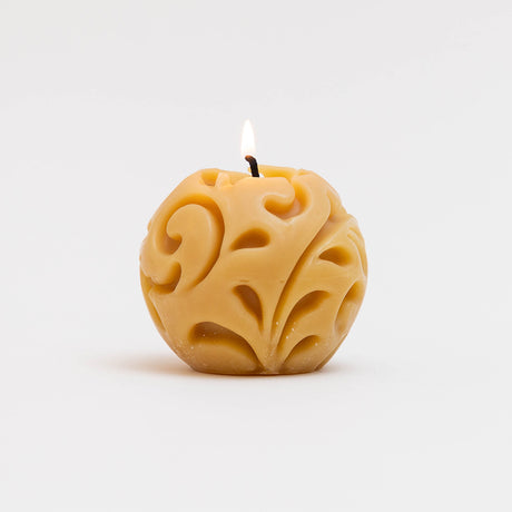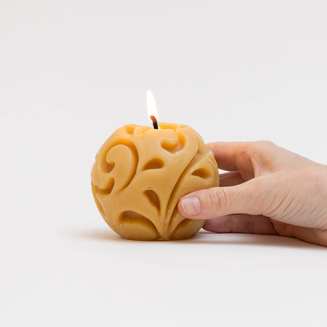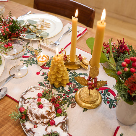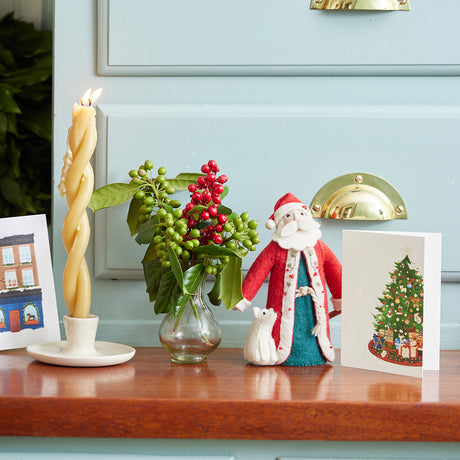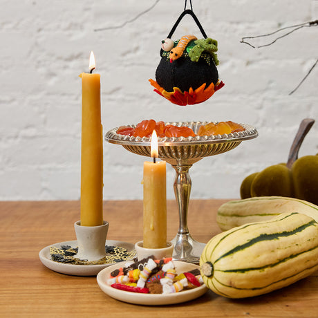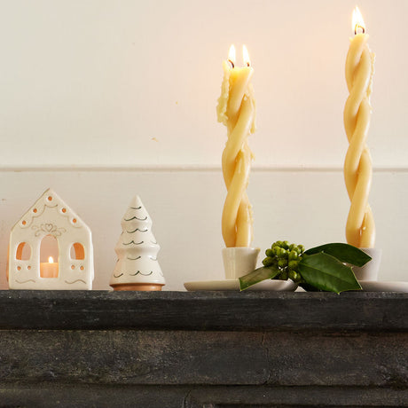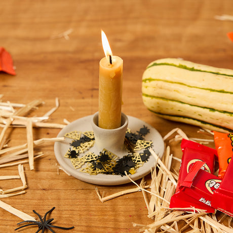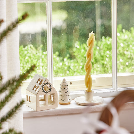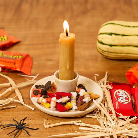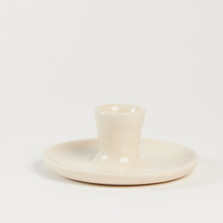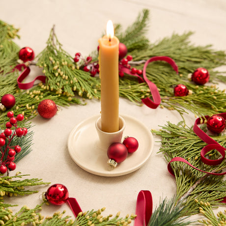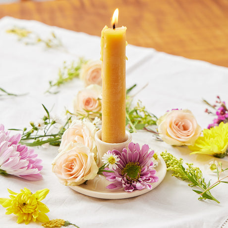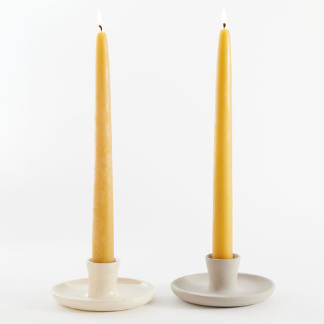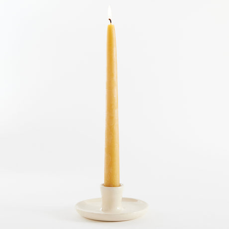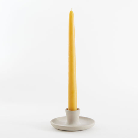 Natural Glossy Ceramic Candle Holder with Beeswax Taper