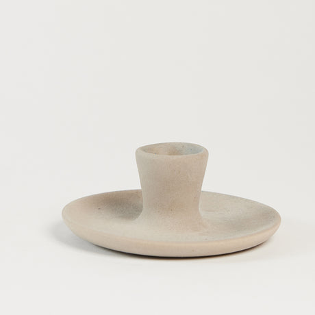 Gray Matte Ceramic Candle Holder with Beeswax Taper