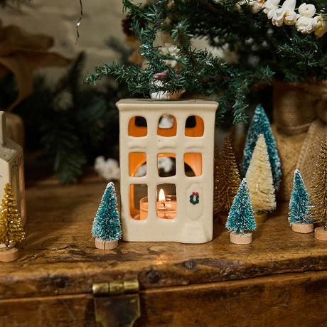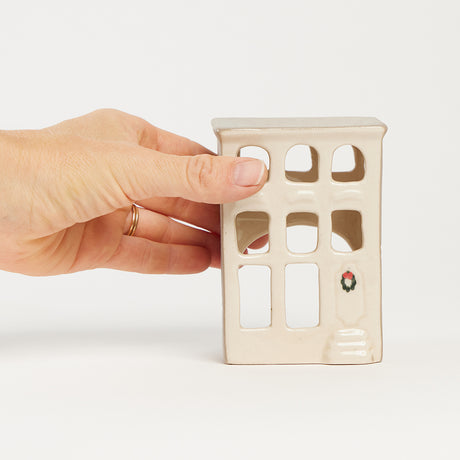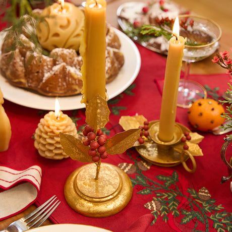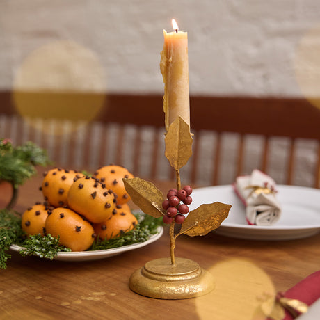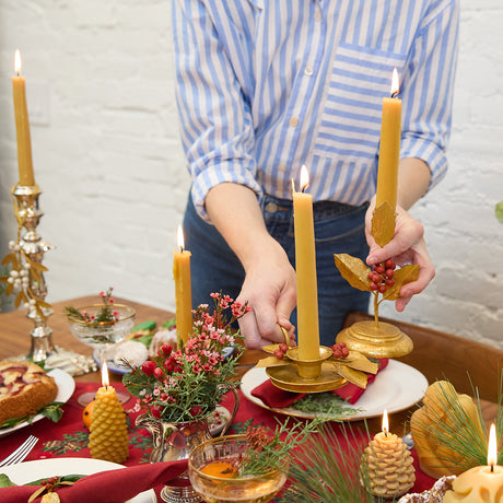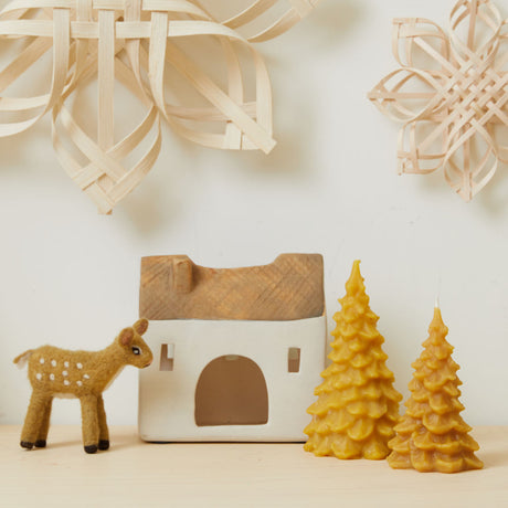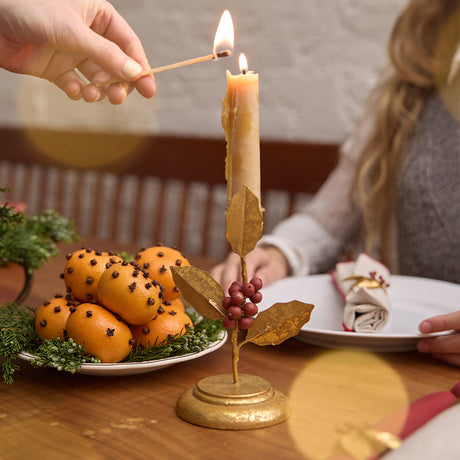 Gray Matte Ceramic Candle Holder with Beeswax Taper
