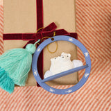 Just two polar bear cubs snuggling under the twinkling stars. Bring the magic of the North Pole to your tree this holiday season with this hand-painted clay and wood ornament, handmade in Peru!